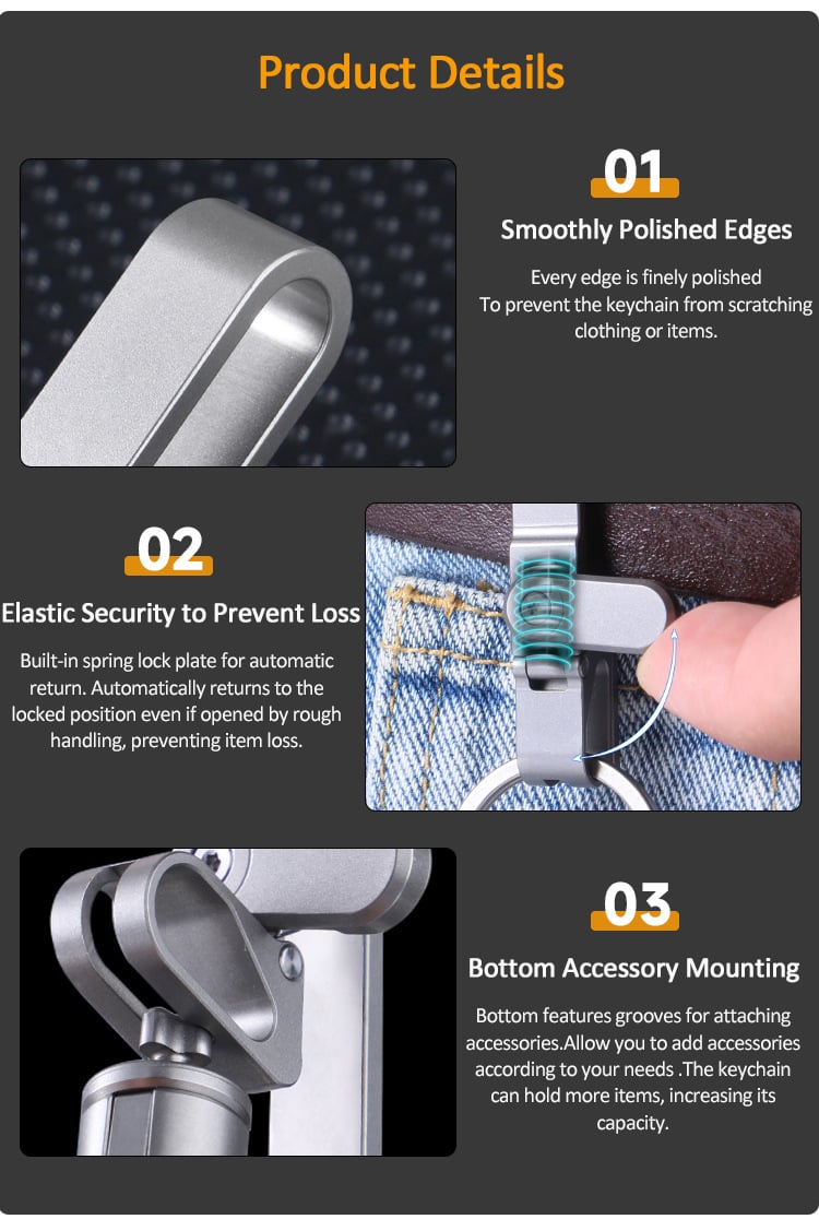 Not only suitable for keys, but also for carrying tools, knives, USB drives, etc. A perfect match for outdoor sports, daily commutes, and tactical gear.